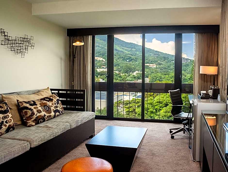 The spacious air-conditioned suite offers a flat-screen TV with cable channels, a tea and coffee maker, executive lounge access and a safe deposit box. The unit has 1 bed.